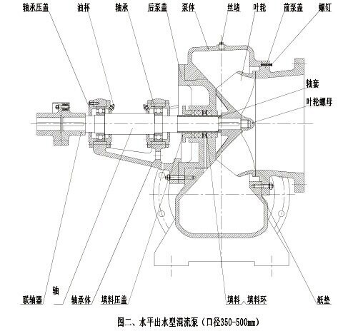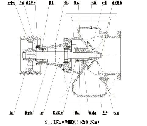 1、HW型泵主要由泵蓋、葉輪、泵體、泵軸、軸套和軸承體等主要零件構(gòu)成。